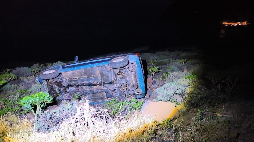 Se queda atrapado dentro del coche tras sufrir un aparatoso accidente en la carretera del Parador, en El Hierro
